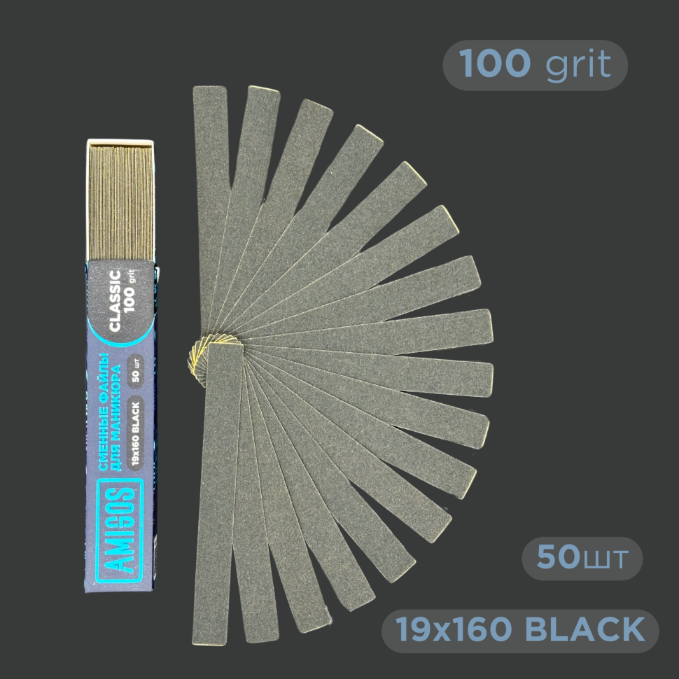 Сменные файлы AMIGOS Classic 19*160 мм 100 грит, black 50 шт